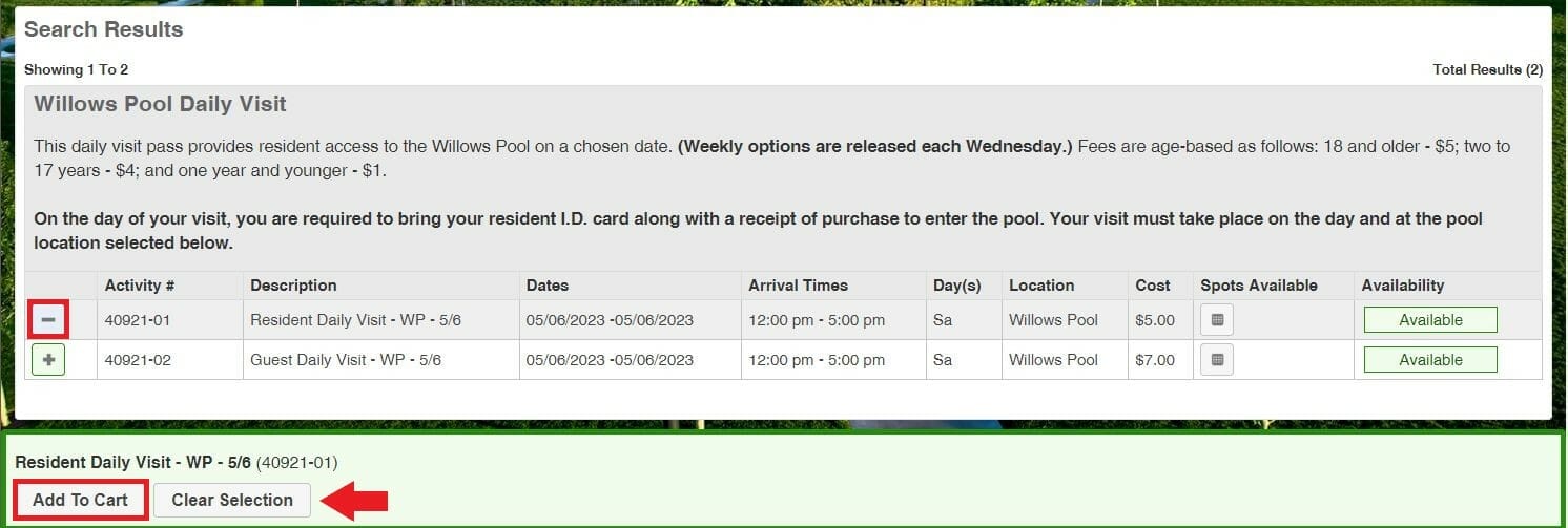 - After selecting your daily visit(s), click “Add to Cart.”