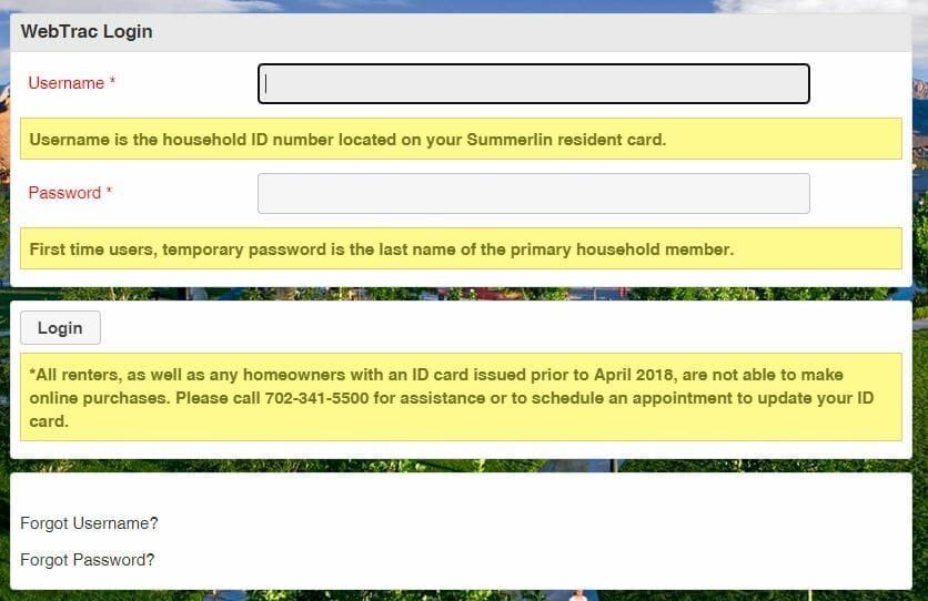 - Username – Summerlin Household ID# found on the front of your Summerlin Membership Card (issued beginning April 2018*).