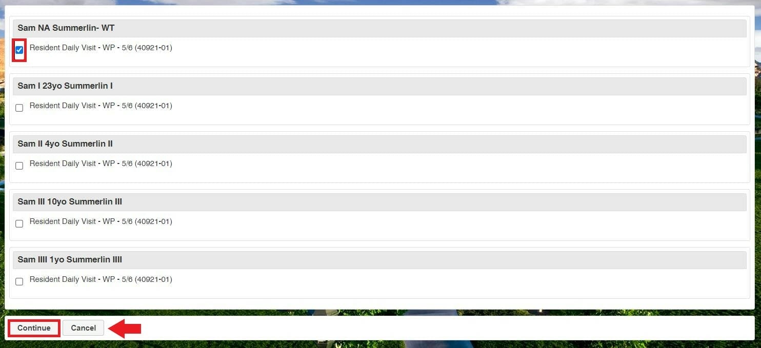 - To add a daily visit for an additional household member, you may choose “Continue Shopping” to go back and select another household member.