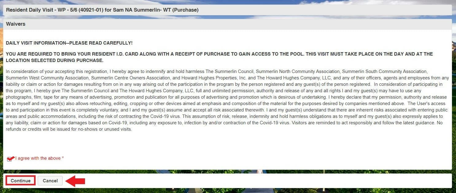 On this screen, you will see the daily visits available. Locate the day you wish to attend the pool.