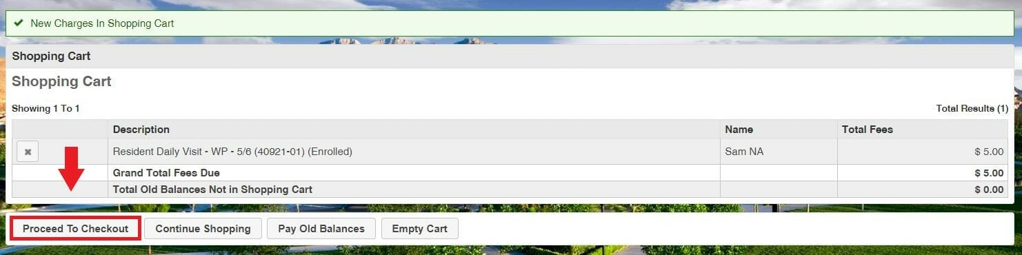 Review the daily visit(s) selected for purchase. If correct, click “Proceed to Checkout.”
