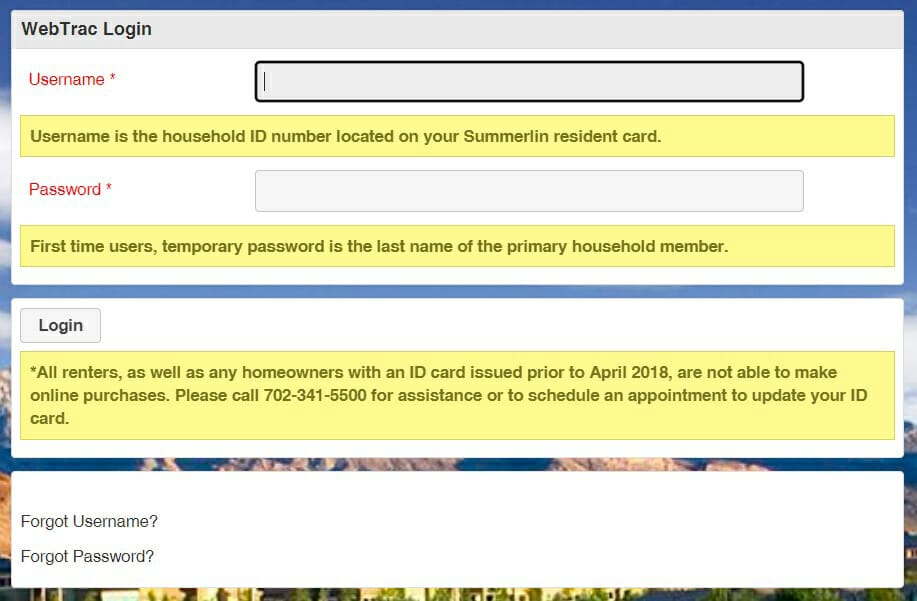 - Username – Summerlin Household ID# found on the front of your Summerlin Membership Card (issued beginning April 2018*).