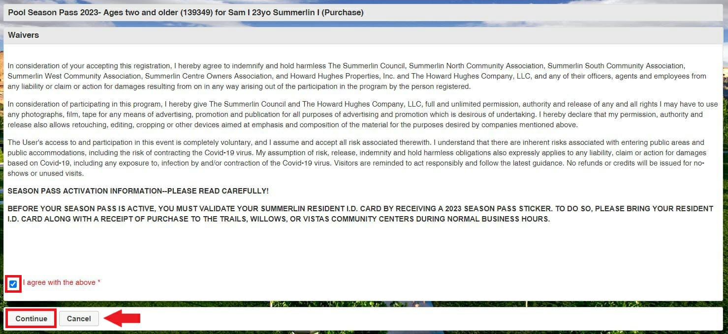 Before your season pass is active, you must validate your Summerlin Resident I.D. Card with a 2023 season pass sticker. To do so, please bring your Resident I.D. Card along with receipt of purchase to the Trails, Willows or Vistas Community Centers during normal business hours.