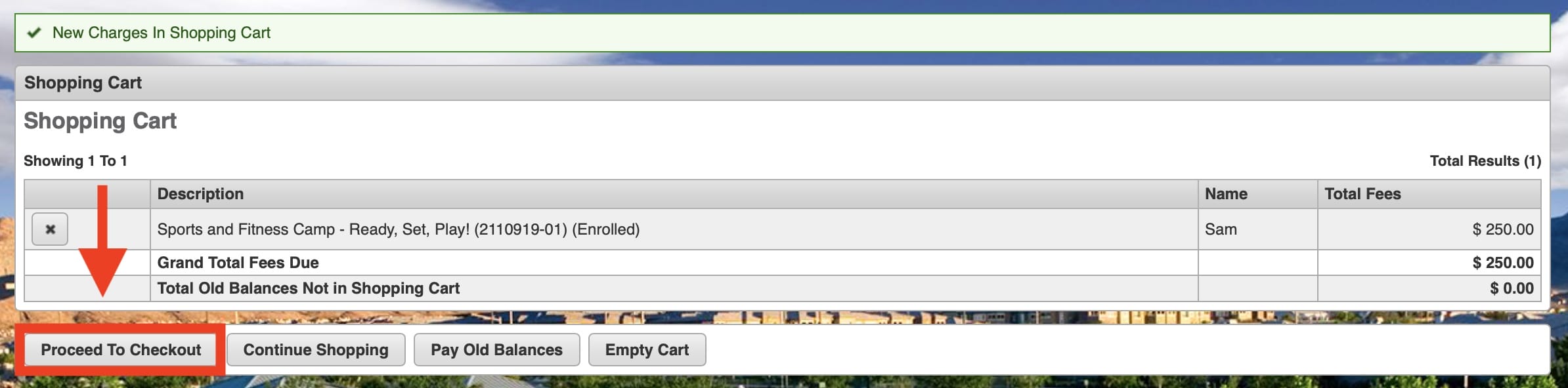 This screen will show you the camp(s) selected for purchase. If correct, click “Proceed to Checkout.”