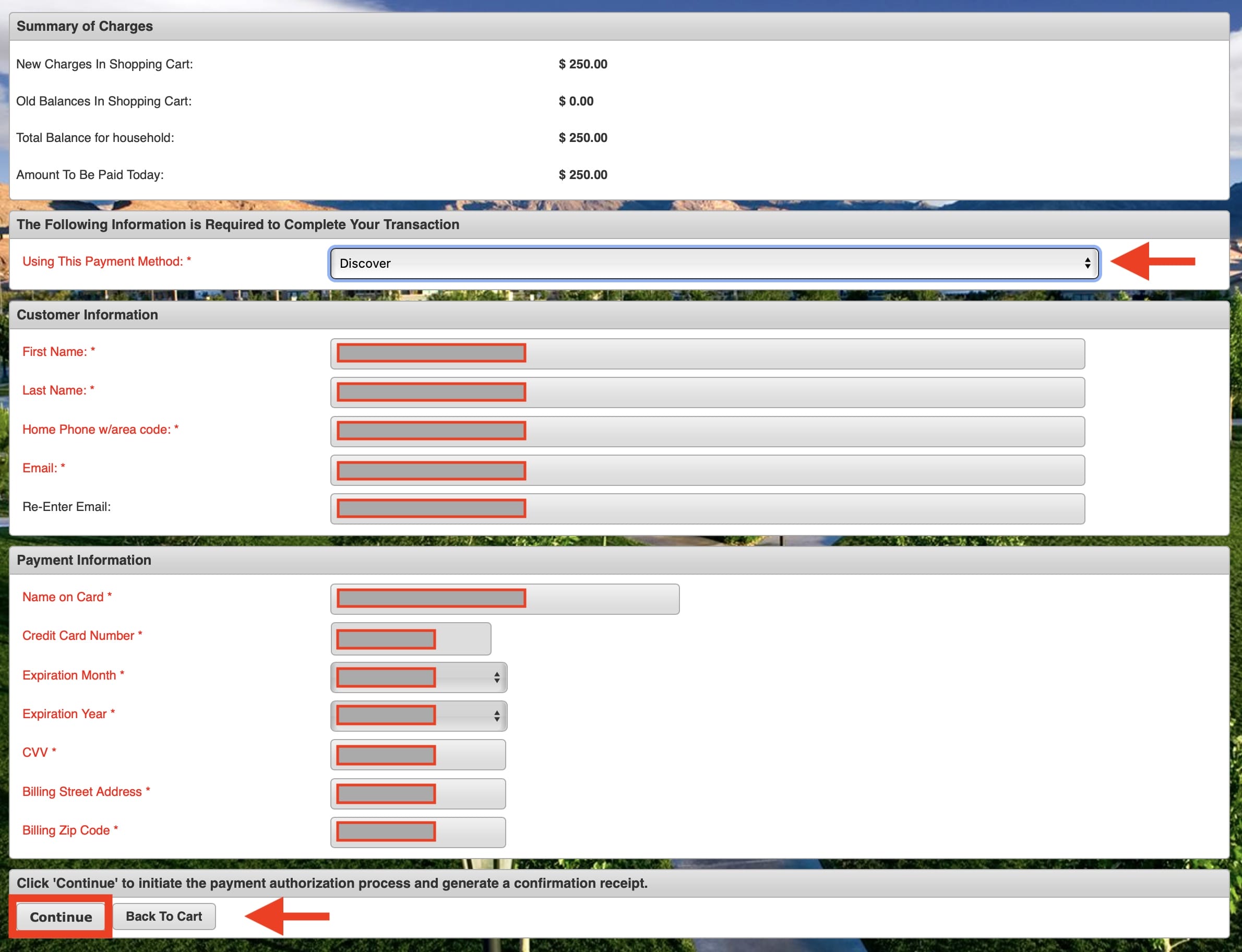 - Please fill out your Payment Information